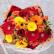 В составе: гербера 6, гербера мини 9, роза кустовая фаер флеш 10, упаковка, лента атласная